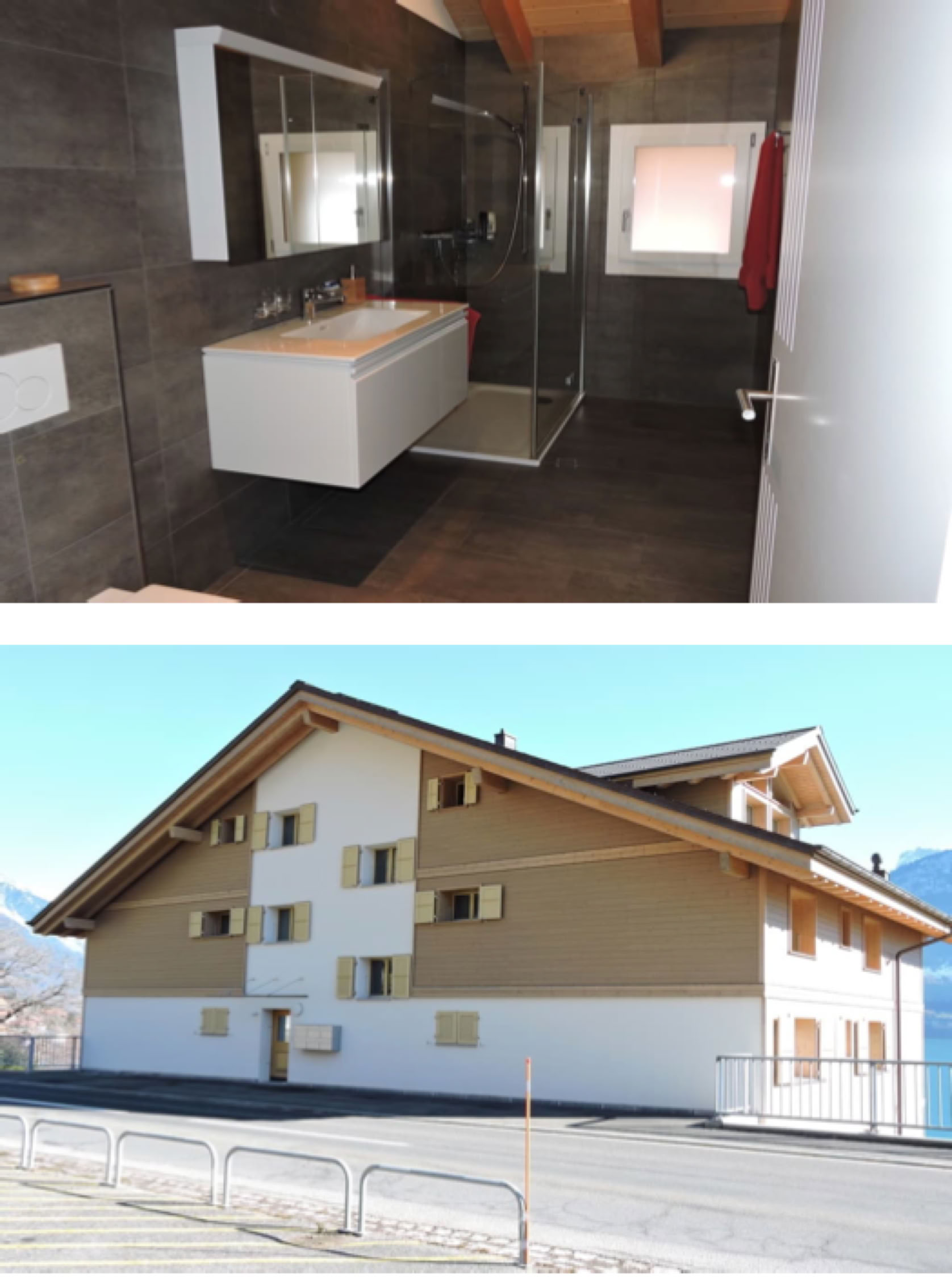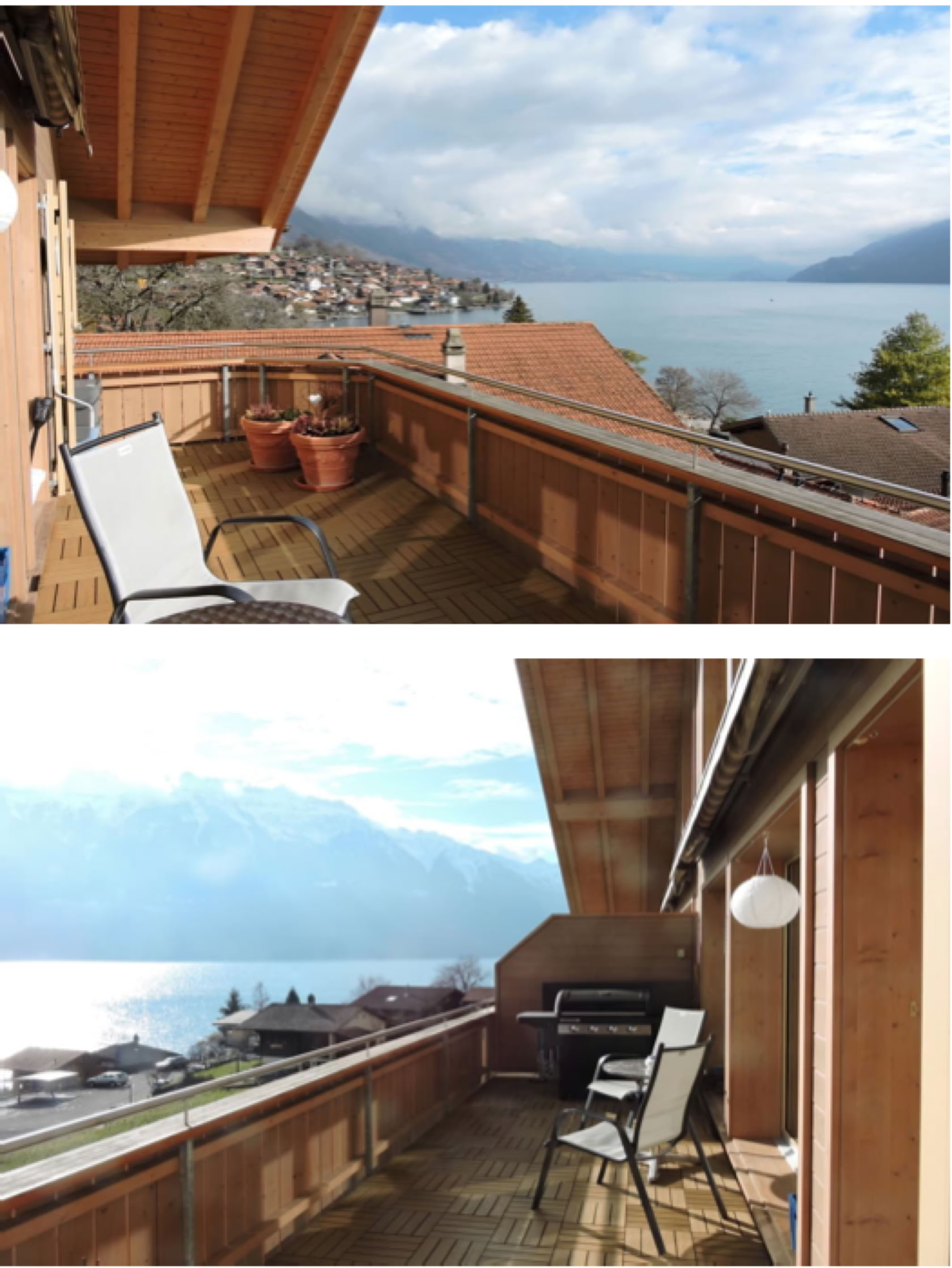 Das Grundstück befindet sich in zentraler Lage, 50 m vom See. Die Aussicht auf den Brienzersee und in die Bergwelt ist traumhaft schön. Das Mehrfamilienhaus wurde neu erstellt im 2016 und beinhaltet sechs 3.5 Zimmer Wohnungen die Bruttofläche der Dachwohnung hat 120.9 m2 mit Galerie. Der grosse Balkon umfasst 15.8 m2. Im Haus befindet sich ein Lift für 9 Personen der vom Kellergeschoss in alle drei Wohngeschosse geht. Zu jeder Wohnung gehört ein Abstellraum, der sich im Kellergeschoss befindet. Auch hat es im Keller eine Gemeinschaftswaschköche mit Waschmaschine und Tumblertutm pro Wohnung und ein Raum für die Fahrräder. Die Liegenschaft wir durch eine zentral-/Bodenheizung mit Pellets beheizt.