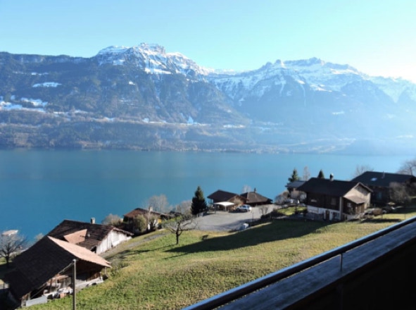 Das Grundstück befindet sich in zentraler Lage, 50 m vom See. Die Aussicht auf den Brienzersee und in die Bergwelt ist traumhaft schön. Das Mehrfamilienhaus wurde neu erstellt im 2016 und beinhaltet sechs 3.5 Zimmer Wohnungen die Bruttofläche der Dachwohnung hat 120.9 m2 mit Galerie. Der grosse Balkon umfasst 15.8 m2. Im Haus befindet sich ein Lift für 9 Personen der vom Kellergeschoss in alle drei Wohngeschosse geht. Zu jeder Wohnung gehört ein Abstellraum, der sich im Kellergeschoss befindet. Auch hat es im Keller eine Gemeinschaftswaschköche mit Waschmaschine und Tumblertutm pro Wohnung und ein Raum für die Fahrräder. Die Liegenschaft wir durch eine zentral-/Bodenheizung mit Pellets beheizt.