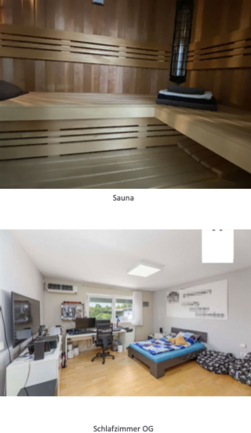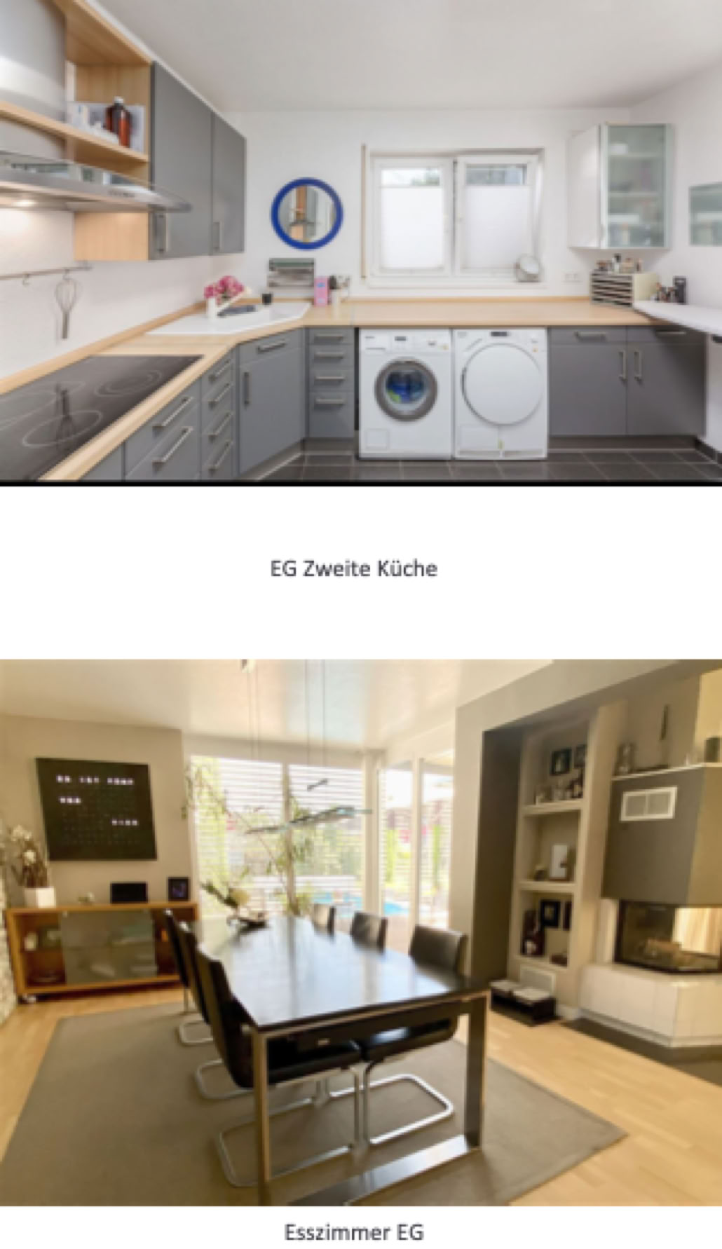 Dieses großzügige Wohnhaus bietet mit ca. 243 m² Wohnfläche plus einem vielseitig nutzbaren Anbau (ca. 74 m²) ein Raumangebot, das in dieser Form selten zu finden ist. Ob als Einfamilienhaus mit luxuriösem Komfort, als Zuhause für mehrere Generationen oder als Wohnen und Arbeiten unter einem Dach – hier stehen Ihnen alle Möglichkeiten offen. Das Herzstück bildet der offene Wohn- und Essbereich mit stilvollem Kamin und gleich zwei modernen Einbauküchen. Von hier gelangen Sie auf die weitläufige Terrasse mit beheizbarem Pool (Keramikwanne mit 3D-Oberfläche) – perfekt für entspannte Stunden im eigenen Wellnessbereich. Ergänzt wird dieser durch ein elegantes Bad mit Sauna, Wanne und Dusche. Die private Rückzugsebene im Obergeschoss bietet drei weitere Schlaf- bzw. Kinderzimmer, zwei Bäder sowie ein Ankleidezimmer. Ein großes Büro mit eigener Küchenzeile und Duschbad kann zudem in eine eigenständige Einliegerwohnung verwandelt werden. Der 2014 errichtete Anbau beherbergt ein weiteres Schlafzimmer, einen Fitness- und Ankleidebereich – ideal für Gäste oder als separater Wohnbereich. Komfort und Sicherheit sind selbstverständlich: Klimaanlage in den Schlafräumen, Garage mit elektrischem Tor und direktem Hauszugang, zusätzlicher Carport (2014), fünf weitere Stellplätze, eingezäuntes Grundstück mit Alarmanlage und Videoüberwachung.